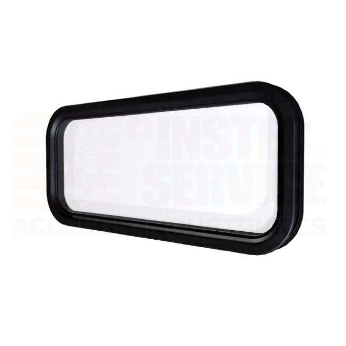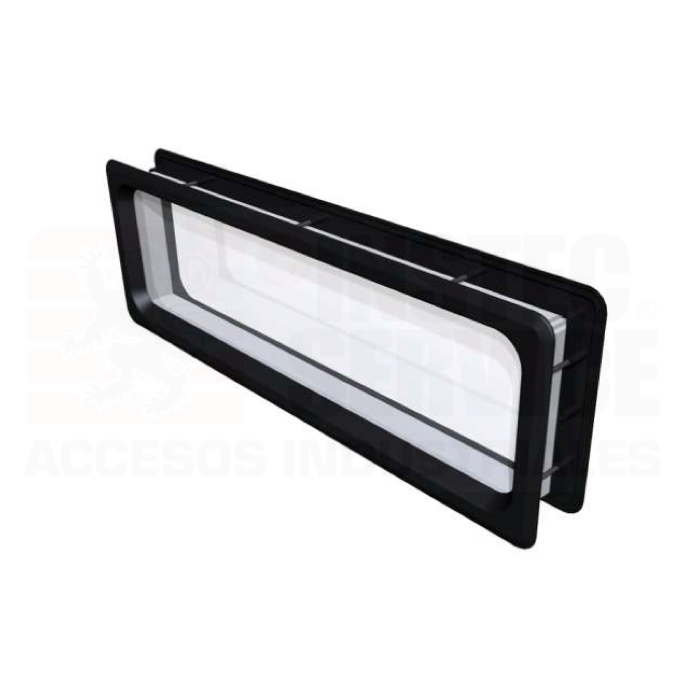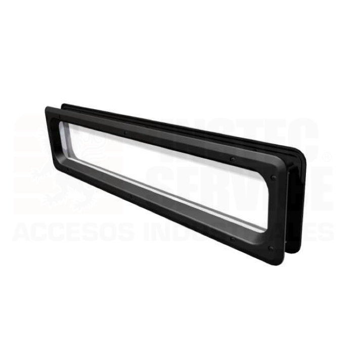 - 018-242 – Mirilla para puerta seccional de 6″ x 24″ atornillarle, color negro con vidrio transparente